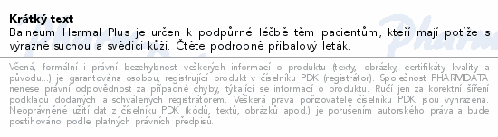 Balneum Hermal Plus je určen k podpůrné léčbě těm pacientům, kteří mají potíže s výrazně suchou a svědící kůží. Čtěte pozorně příbalový leták.