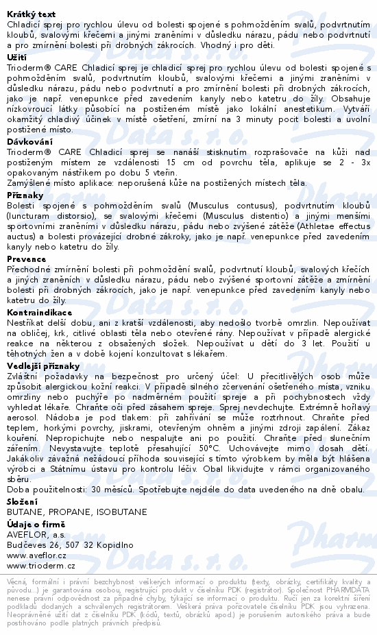 Chladicí sprej pro rychlou úlevu od bolesti spojené s pohmožděním svalů, podvrtnutím kloubů, svalovými křečemi a jinými zraněními v důsledku nárazu, pádu nebo podvrtnutí a pro zmírnění bolesti při drobných zákrocích. Vhodný i pro děti.