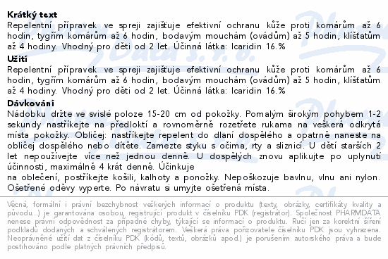 - ochrana proti komárům (včetně tygřích komárů) až 6 hodin