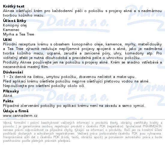 Aknea ošetřující krém pro každodenní péči o pokožku s projevy akné a s nadměrnou tvorbou kožního mazu.