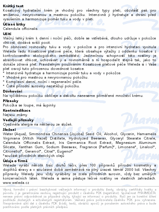 Kosatcový hydratační krém je vhodný pro všechny typy pleti, obzvlášť pak pro smíšenou, nevyrovnanou a mastnou pokožku. Intenzivně ji hydratuje a chrání před vysušením a harmonizuje poměr tuku a vody v pleti.