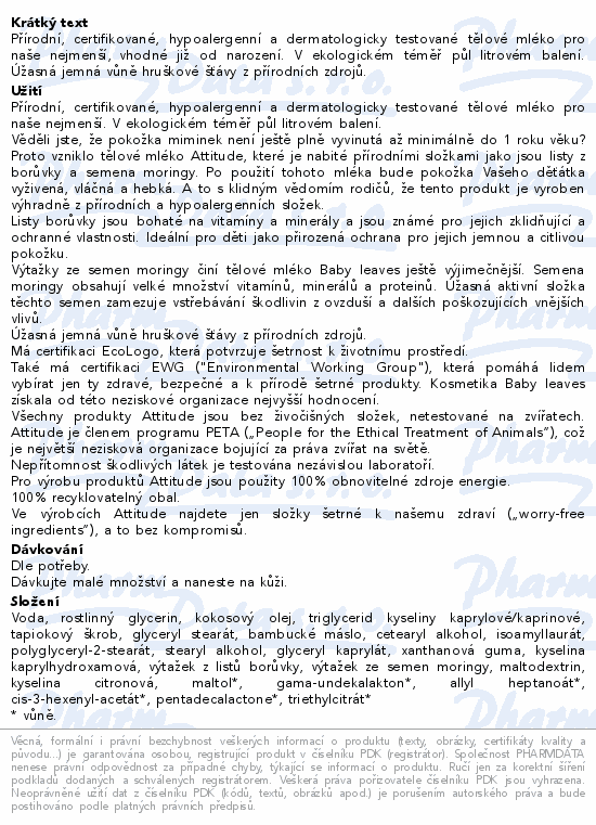 ATTITUDE Dětské tělové mléko hruška 473ml