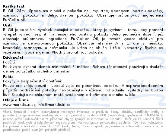 Bi-Oil 125ml: Specialista v péči o pokožku na jizvy, strie, sjednocení odstínu pokožky, stárnoucí pokožku a dehydrovanou pokožku. Obsahuje průlomovou ingredienci PurCellin oil.