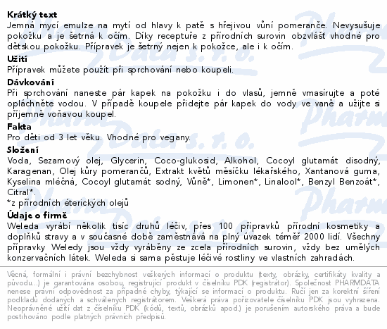 Jemná mycí emulze na mytí od hlavy k patě s hřejivou vůní pomeranče. Nevysušuje pokožku a je šetrná k očím. Díky receptuře z přírodních surovin obzvlášť vhodné pro dětskou pokožku. Přípravek je šetrný nejen k pokožce, ale i k očím.