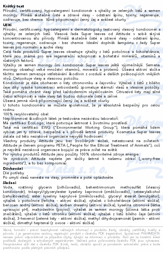 Přírodní, certifikovaný, hypoalergenní kondicionér s výtažky ze zelených listů a semen moringy. Přináší skutečně čisté a zdravé vlasy - odstraní špínu, toxiny, regeneruje, ozdravuje, bez chemie. Vůně připomínající černý čaj a svěžest okurky.