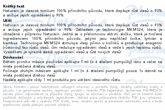 Natucain je vlasové tonikum 100% přírodního původu, které zlepšuje růst vlasů o 93% a snižuje jejich vypadávání o 90%.