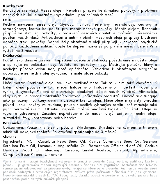 Renovujte své vlasy! Masáž olejem Renohair přispívá ke stimulaci pokožky, k prokrvení vlasových cibulek a možnému výslednému posílení vašich vlasů.