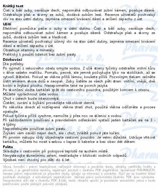 Čistí a bělí zuby, osvěžuje dech, napomáhá odbourávat zubní kámen, posiluje dásně. Odstraňuje plak a skvrny ze zubů, dodává zubům lesk. Recenze uživatelů pochvalují vliv na stav ústní dutiny, zejména omezení krvácení dásní a snížení zápachu z úst.