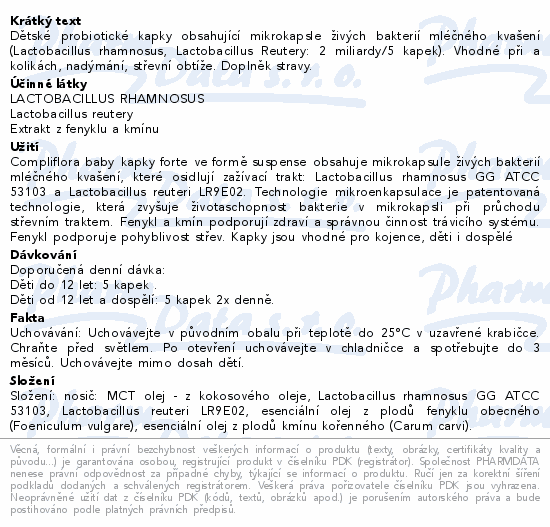 Dětské probiotické kapky obsahující mikrokapsle živých bakterií mléčného kvašení (Lactobacillus rhamnosus, Lactobacillus Reutery: 2 miliardy/5 kapek). Vhodné při a kolikách, nadýmání, střevní obtíže. Doplněk stravy.