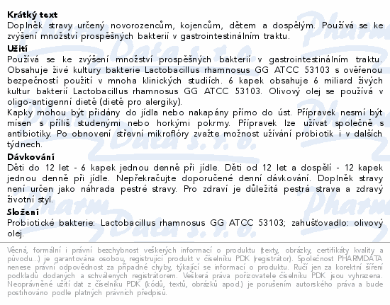 Doplněk stravy určený novorozencům, kojencům, dětem a dospělým. Může být použit i u předčasně narozených dětí a novorozenců s nízkou porodní hmotností. Používá se ke zvýšení množství prospěšných bakterií v gastrointestinálním traktu.