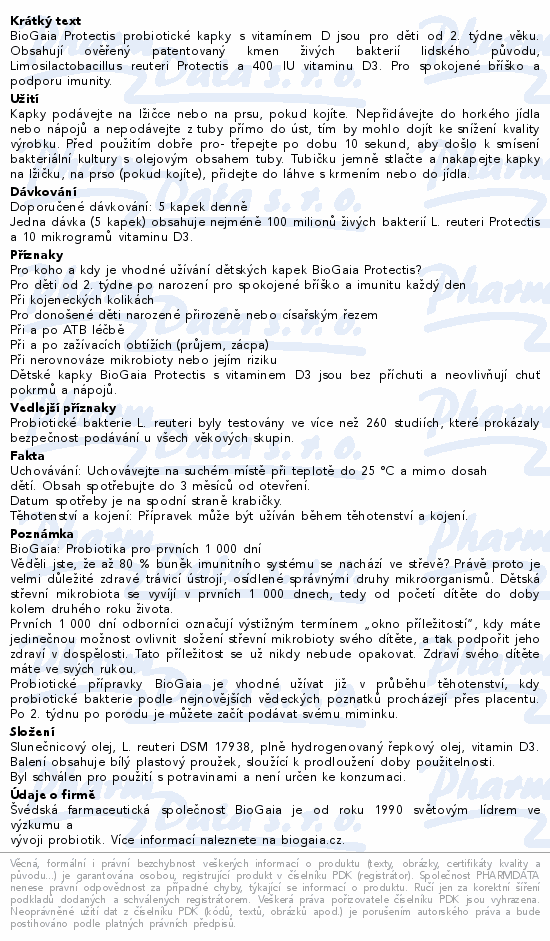 BioGaia Protectis probiotické kapky s vitamínem D jsou pro děti od 2. týdne věku. Obsahují ověřený patentovaný kmen živých bakterií lidského původu, Limosilactobacillus reuteri Protectis a 400 IU vitaminu D3. Pro spokojené bříško a podporu imunity.