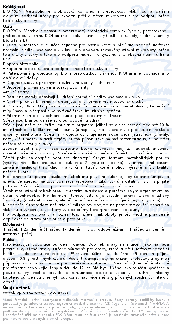 BIOPRON Metabolic je probiotický komplex s prebiotickou vlákninou a dalšími aktivními složkami určený pro expertní péči o střevní mikrobiotu a pro podporu práce těla s tuky a cukry.