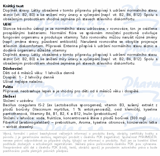 Doplněk stravy. Látky obsažené v tomto přípravku přispívají k udržení normálního stavu sliznic (vit. B2, B3) a ke snížení míry únavy a vyčerpání (např. vit. B2, B6, B12). Spolu s obsaženým probiotikem vhodné zejména při stavech střevního diskomfortu.