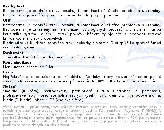 Bactodermal je doplněk stravy obsahující kombinaci důležitého probiotika s vitamíny. Bactodermal je zaměřený na harmonizaci fyziologických procesů.