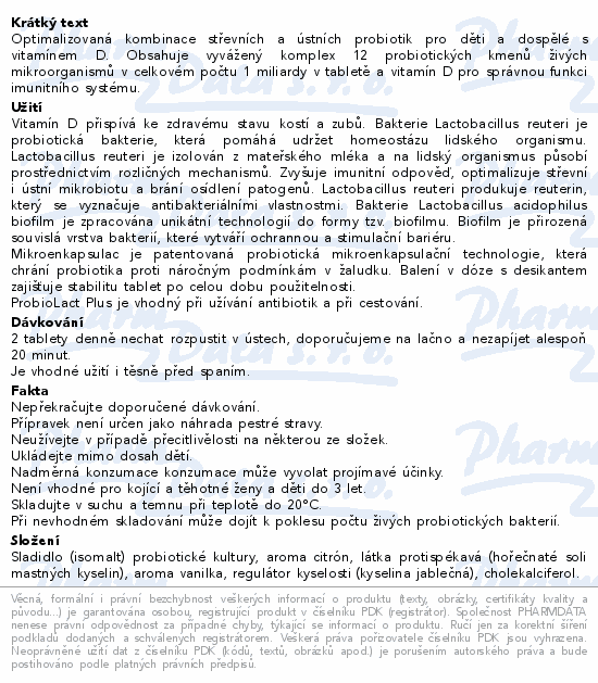 Optimalizovaná kombinace střevních a ústních probiotik pro děti a dospělé s vitamínem D. Obsahuje vyvážený komplex 12 probiotických kmenů živých mikroorganismů v celkovém počtu 1 miliardy v tabletě a vitamín D pro správnou funkci imunitního systému.