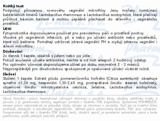 Podporují přirozenou rovnováhu vaginální mikroflóry. Jsou tvořeny kombinací bakteriálních kmenů Lactobacillus rhamnosus a Lactobacillus acidophilus, které přežívají průchod trávicím traktem a mohou úspěšně přecházet do střevního i vaginálního prostředí.