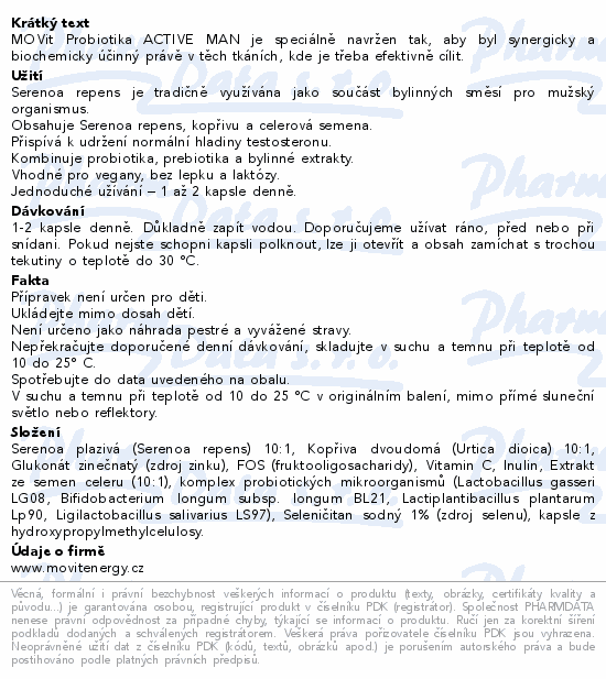 MOVit Probiotika ACTIVE MAN je speciálně navržen tak, aby byl synergicky a biochemicky účinný právě v těch tkáních, kde je třeba efektivně cílit.