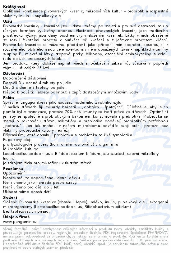 Oblíbená kombinace pivovarských kvasnic, mikrobiálních kultur – probiotik a rozpustné vlákniny inulin + pupalkový olej.