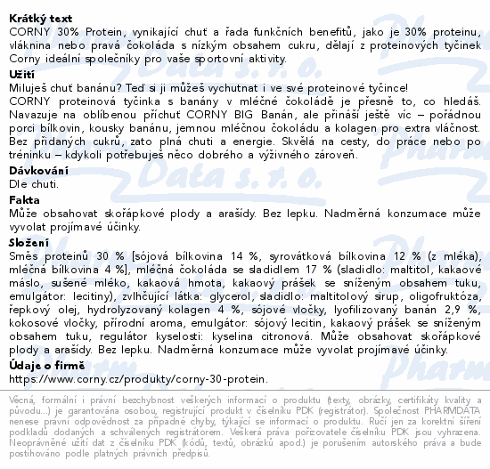 CORNY 30% Protein, vynikající chuť a řada funkčních benefitů, jako je 30% proteinu, vláknina nebo pravá čokoláda s nízkým obsahem cukru, dělají z proteinových tyčinek Corny ideální společníky pro vaše sportovní aktivity.