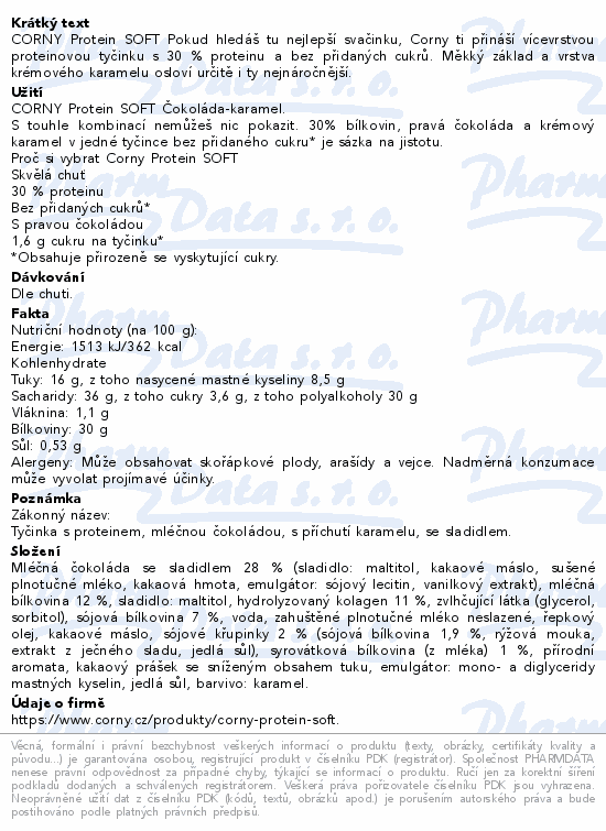 CORNY Protein SOFT Pokud hledáš tu nejlepší svačinku, Corny ti přináší vícevrstvou proteinovou tyčinku s 30 % proteinu a bez přidaných cukrů. Měkký základ a vrstva krémového karamelu osloví určitě i ty nejnáročnější.