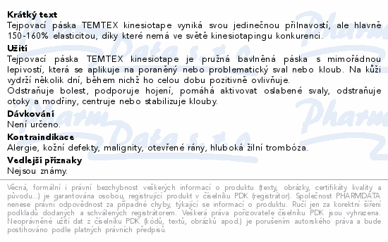 Tejpovací páska TEMTEX kinesiotape vyniká svou jedinečnou přilnavostí, ale hlavně 150-160% elasticitou, díky které nemá ve světě kinesiotapingu konkurenci.
