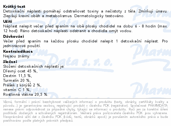 Detoxikační náplasti pomáhají odstraňovat toxiny a nečistoty z těla. Zmírňují únavu. Zlepšují krevní oběh a metabolismus. Dermatologicky testováno.
