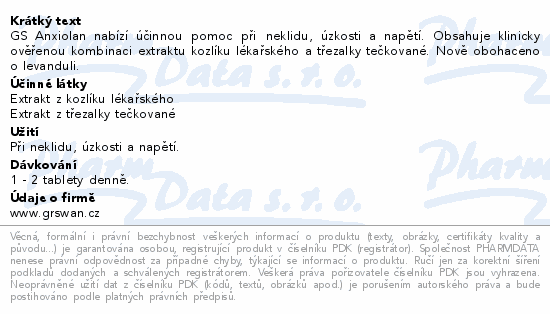 GS Anxiolan nabízí účinnou pomoc při neklidu, úzkosti a napětí. Obsahuje klinicky ověřenou kombinaci extraktu kozlíku lékařského a třezalky tečkované. Nově obohaceno o levanduli.