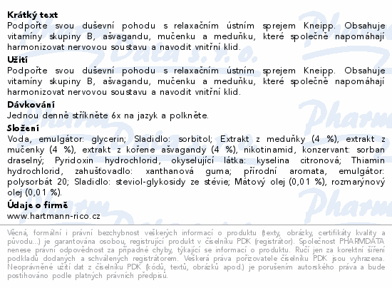 Podpořte svou duševní pohodu s relaxačním ústním sprejem Kneipp. Obsahuje vitamíny skupiny B, ašvagandu, mučenku a meduňku, které společně napomáhají harmonizovat nervovou soustavu a navodit vnitřní klid.