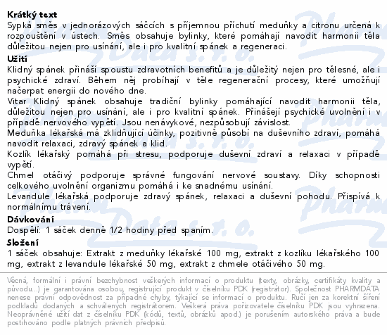 Vitar Klidný spánek meduňka+citron 20x2g