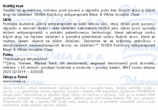 Vsaďte na spolehlivou ochranu proti pocení a zápachu potu bez žlutých skvrn a bílých stop na oblečení: NIVEA Kuličkový antiperspirant Black & White Invisible Clear.