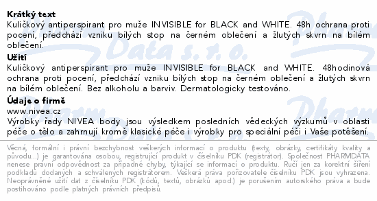 Kuličkový antiperspirant pro muže INVISIBLE for BLACK and WHITE. 48h ochrana proti pocení, předchází vzniku bílých stop na černém oblečení a žlutých skvrn na bílém oblečení.