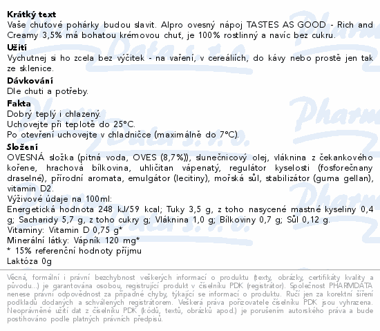Alpro Oves.nápoj Tastes as good Rich and Creamy 1l