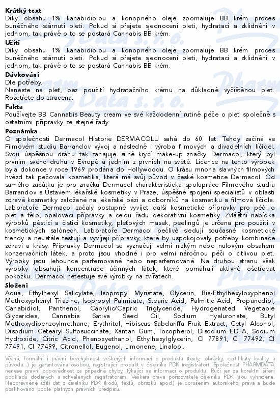 Díky obsahu 1% kanabidiolou a konopného oleje zpomaluje BB krém proces buněčného stárnutí pleti. Pokud si přejete sjednocení pleti, hydrataci a zklidnění v jednom, tak právě o to se postará Cannabis BB krém.
