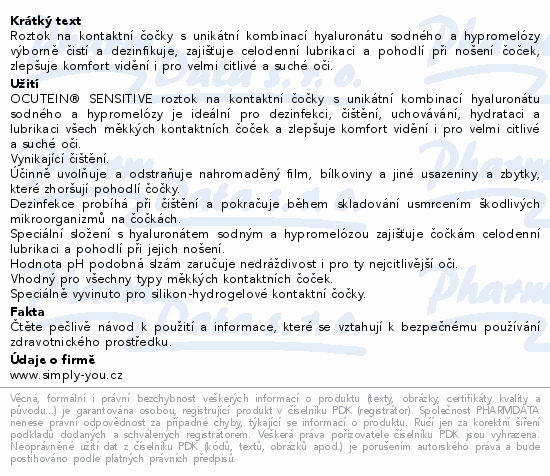 OCUTEIN SENSITIVE rozt na kont čoč 360ml