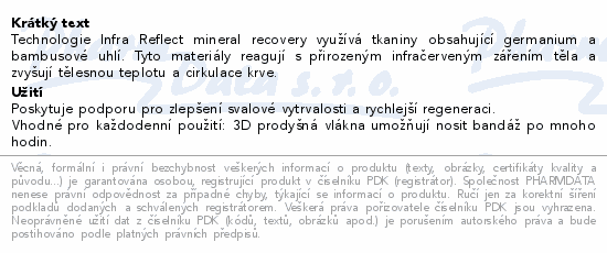 Technologie Infra Reflect mineral recovery využívá tkaniny obsahující germanium a bambusové uhlí. Tyto materiály reagují s přirozeným infračerveným zářením těla a zvyšují tělesnou teplotu a cirkulace krve.
