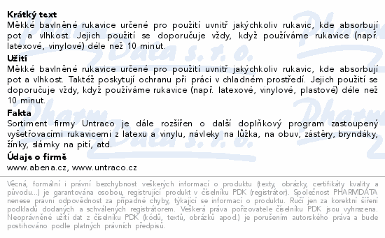 Měkké bavlněné rukavice určené pro použití uvnitř jakýchkoliv rukavic, kde absorbují pot a vlhkost. Jejich použití se doporučuje vždy, když používáme rukavice (např. latexové, vinylové) déle než 10 minut.