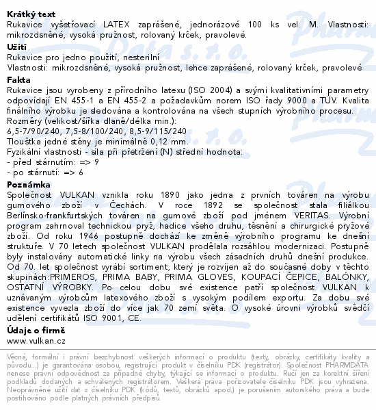 Rukavice vyšetřovací LATEX zaprášené, jednorázové 100 ks vel. M. Vlastnosti: mikrozdsněné, vysoká pružnost, rolovaný krček, pravolevé.