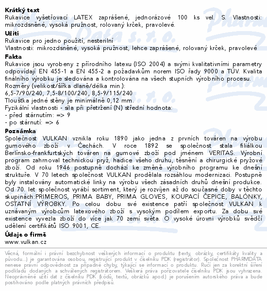 Rukavice vyšetřovací LATEX zaprášené, jednorázové 100 ks vel. S. Vlastnosti: mikrozdsněné, vysoká pružnost, rolovaný krček, pravolevé.