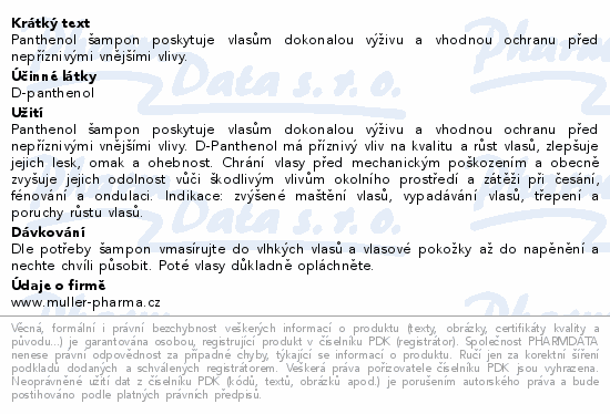 Panthenol šampon poskytuje vlasům dokonalou výživu a vhodnou ochranu před nepříznivými vnějšími vlivy.