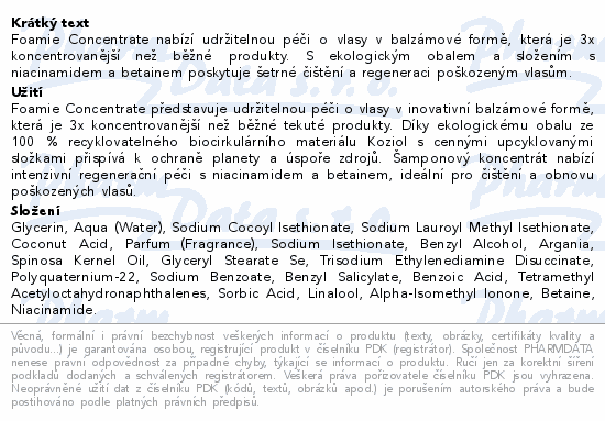 Foamie Concentrate nabízí udržitelnou péči o vlasy v balzámové formě, která je 3x koncentrovanější než běžné produkty. S ekologickým obalem a složením s niacinamidem a betainem poskytuje šetrné čištění a regeneraci poškozeným vlasům.