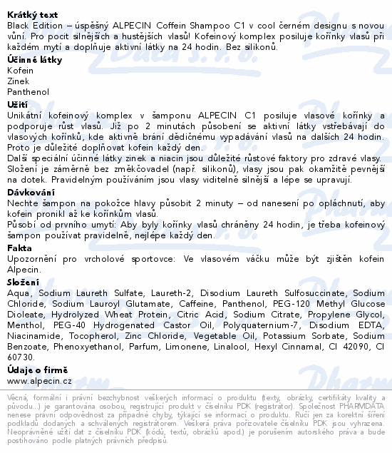 Black Edition – úspěšný ALPECIN Coffein Shampoo C1 v cool černém designu s novou vůní. Pro pocit silnějších a hustějších vlasů! Kofeinový komplex posiluje kořínky vlasů při každém mytí a doplňuje aktivní látky na 24 hodin. Bez silikonů.