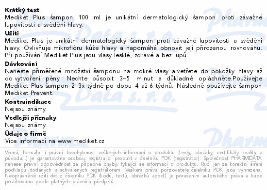 Mediket Plus šampon 100 ml je unikátní dermatologický šampon proti závažné lupovitosti a svědění hlavy.