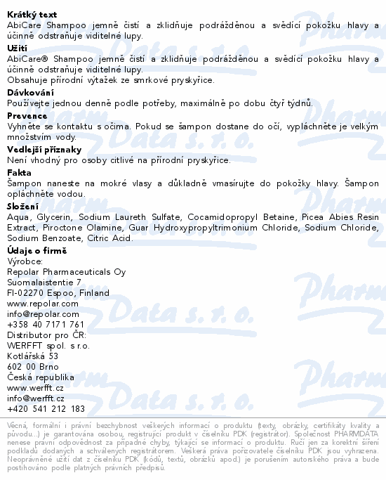 AbiCare Shampoo jemně čistí a zklidňuje podrážděnou a svědící pokožku hlavy a účinně odstraňuje viditelné lupy.