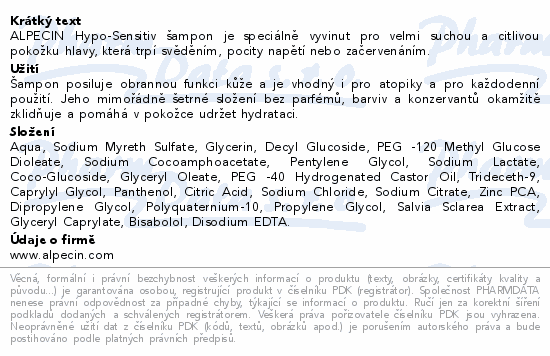 ALPECIN Hypo-Sensitiv šampon je speciálně vyvinut pro velmi suchou a citlivou pokožku hlavy, která trpí svěděním, pocity napětí nebo začervenáním.