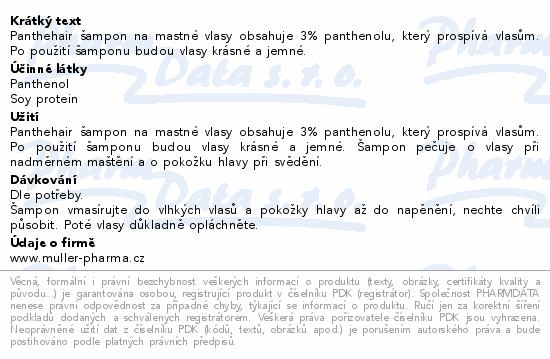 Panthehair šampon mastné vlasy NEW 200ml Dr.Müller