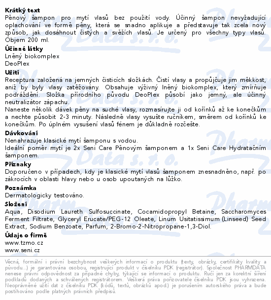 Seni Care pěnový šampon 200ml
