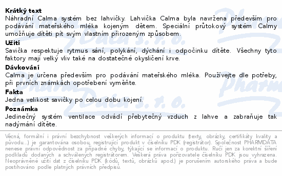 Náhradní Calma systém bez lahvičky. Lahvička Calma byla navržena především pro podávání mateřského mléka kojeným dětem. Speciální průtokový systém Calmy umožňuje dítěti pít svým vlastním přirozeným způsobem.