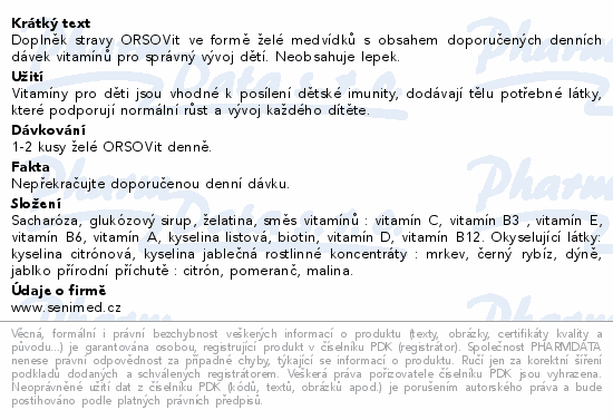 Orsovit® je doplněk stravy pro děti na bázi vitamínů A, C, B12, B6, D a kyseliny listové, které přispívají k normálnímu fungování imunitního systému a biotinu, niacinu, vitamínů C, B12 a B6, které přispívají k normálnímu energetickému metabolismu .