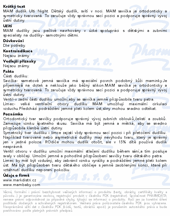 MAM dudlík Ulti Night. Dětský dudlík, svítí v noci. MAM savička je ortodonticky a symetricky tvarovaná. To zaručuje vždy správnou sací pozici a podporuje správný vývoj ůstní dutiny.