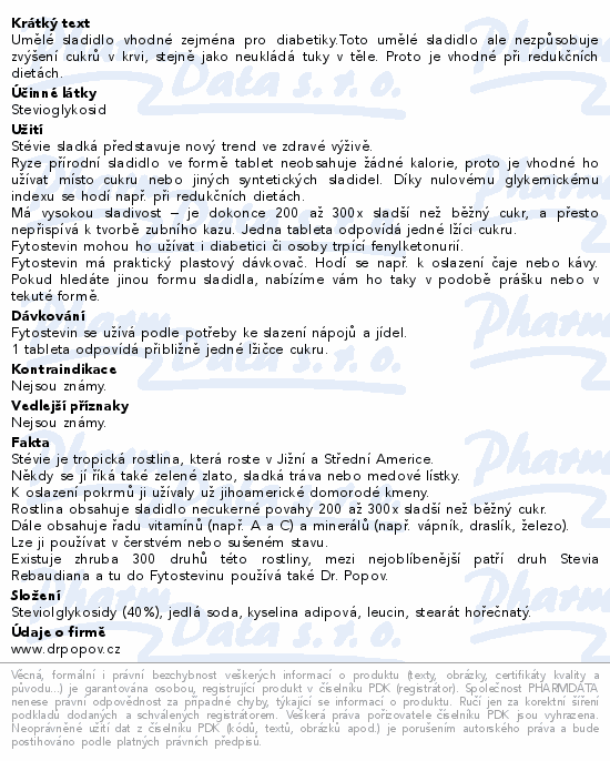 Dr.Popov Fytostevin sladidlo ze stévie tbl.200